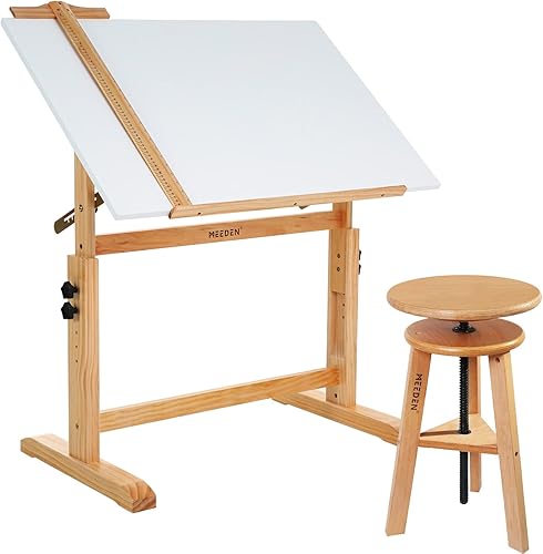 MEEDEN Table à dessin en bois blanc avec grande surface réglable et inclinée, bureau à dessin et table de loisirs, table à croquis pour écrire, étudier, lire, travailler