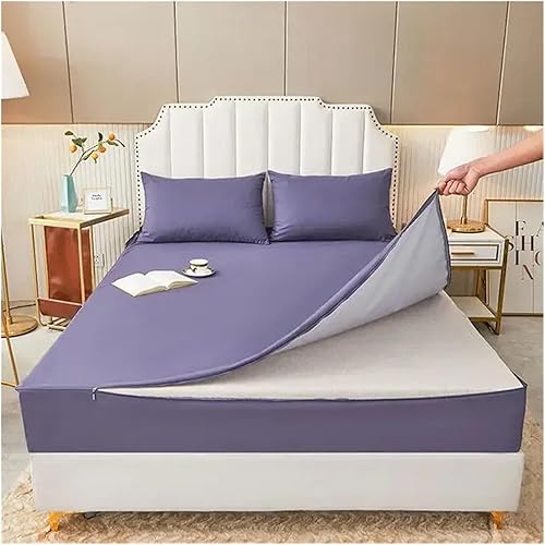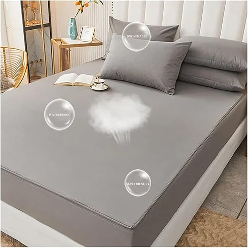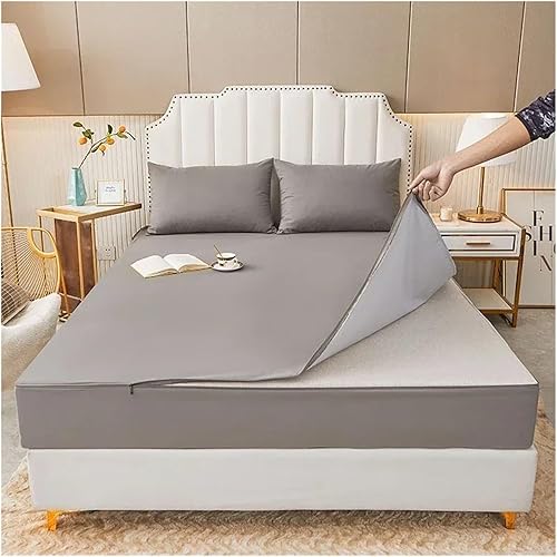 Lot de 3 housses de lit imperméables avec fermeture éclair - 6 côtés tout compris - Protège-matelas antidérapant - Gris - 80 x 200 x 15 cm