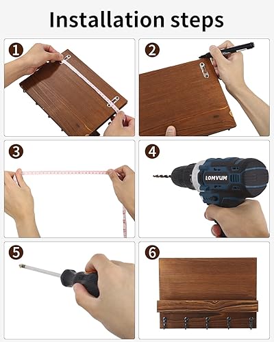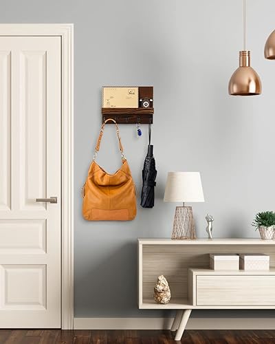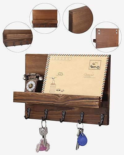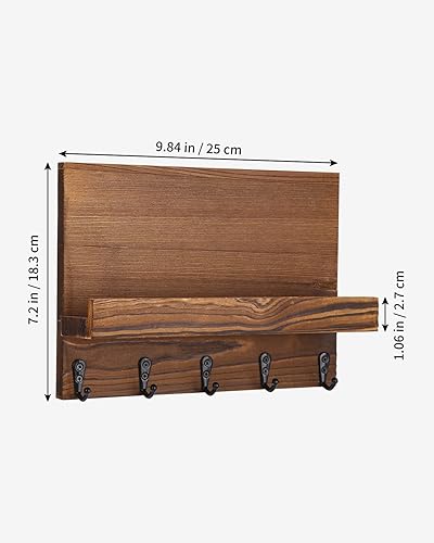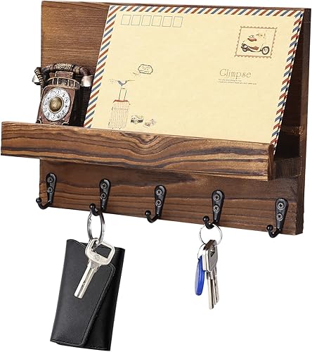 FAOKZE Porte-Clés Mural en Bois Avec 5 Crochets, Porte Courrier et Accroche Clef Décoratif