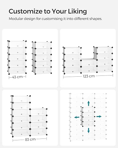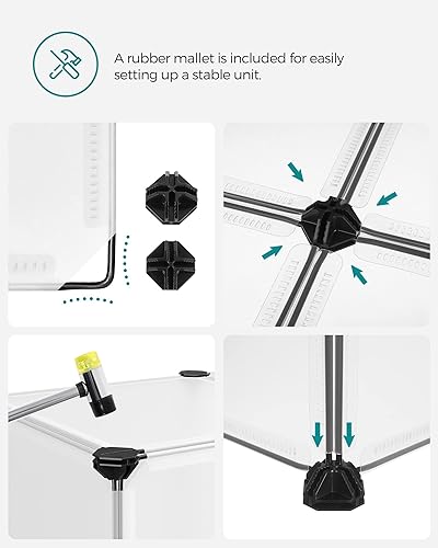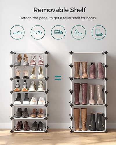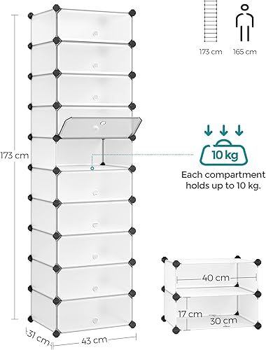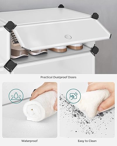 SONGMICS Meuble À Chaussures avec 10 Compartiments, ÉtagÈre Modulable en Plastique, BoÎte À chaussures, avec Porte, Maillet, Rangement, Blanc LPC10W