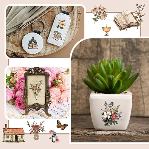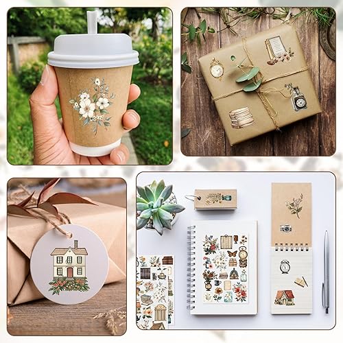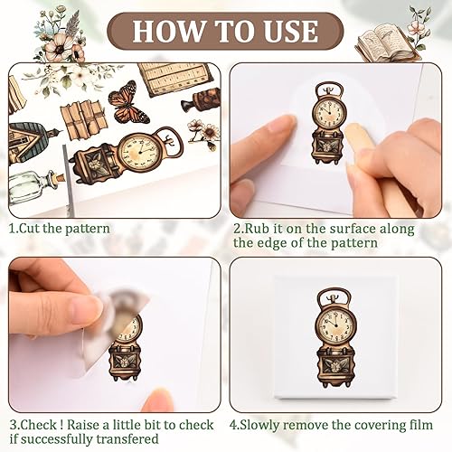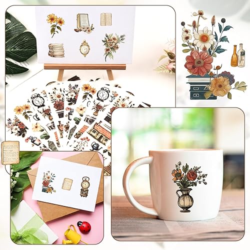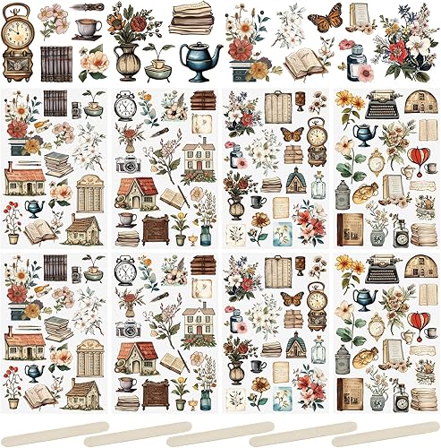 WANDIC Lot de 16 feuilles d'autocollants de transfert à appliquer sur le thème vintage pour cartes de vœux, emballage cadeau, décoration