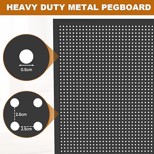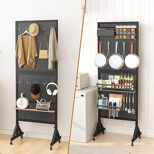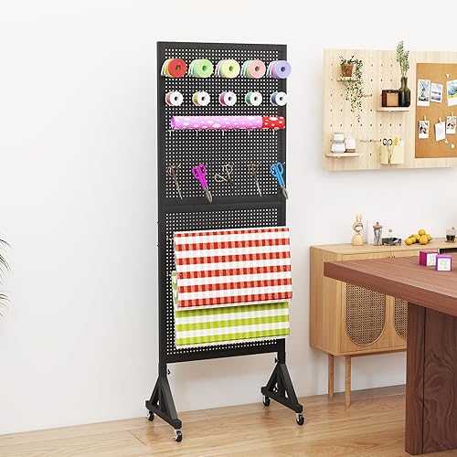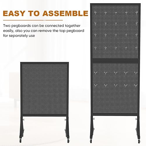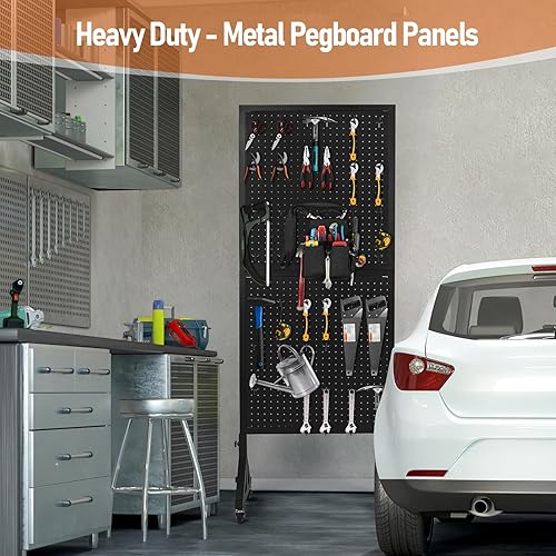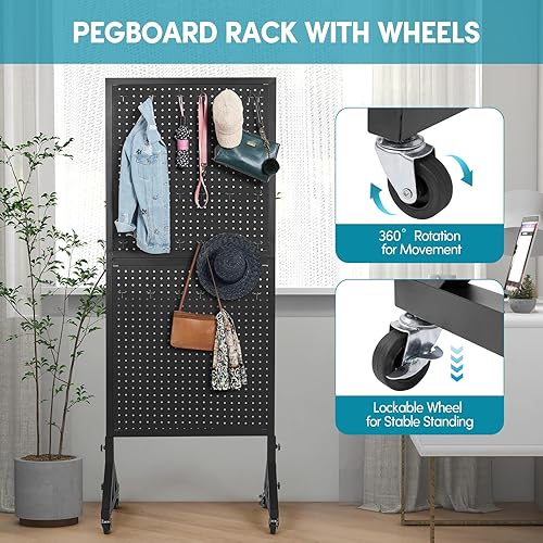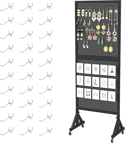 tonchean Présentoir à panneaux perforés avec roues, présentoir en métal robuste avec 30 crochets, panneau perforé noir pour garage, magasins de détail, ateliers, salons d'artisanat