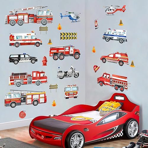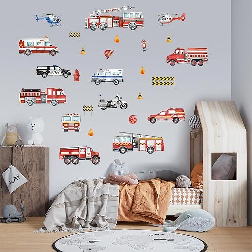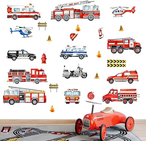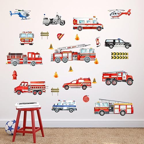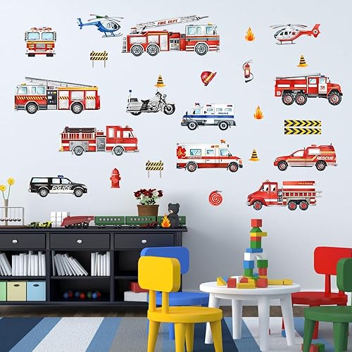 4 Pièces Stickers Muraux Camion De Pompiers, Jeux Muraux Camion, Décoration à Suspendre en Forme De Camion De Pompier, Mural Transport Voitures, Pompiers pour Voiture pour Chambres à Coucher
