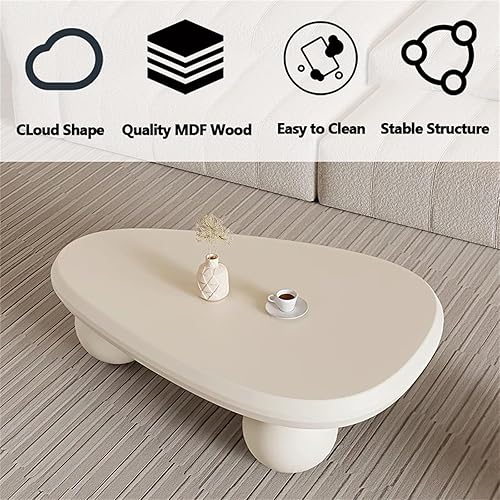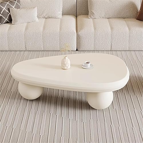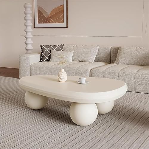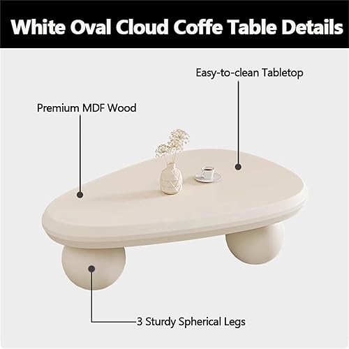 Table Basse Blanche, Jolie Table D'appoint, Table Basse Moderne Avec 3 Pieds En Boule, Table Basse Ovale De Dessin Animé, Table À Thé D'intérieur Irrégulière Pour Salon, Chambre À Coucher,L39.4in