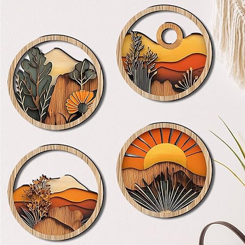 Décor Mural En Bois Boho - Décorations Murales Bohèmes Pour Séjour | 4X Cadres Ronds Géométriques Esthétique Rustique Pour Appartement Maison Campagne Entrée Couloir Rebord Fenêtre Terrasse Balcon Bib
