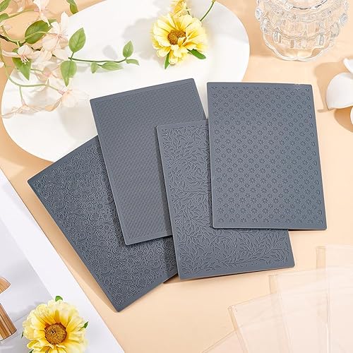 HOBBIESAY 4ensemble Feuilles Texture Argile Polymère Feuilles Texture Argile Polymère Fonctionne avec un Coupe Argile Polymère Effet Rouleau Texture Argile Polymère Pivoine pour Fabrication D'Argile