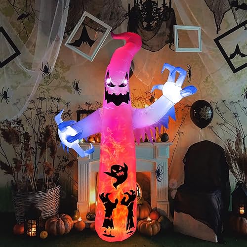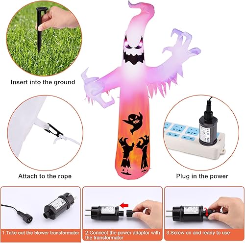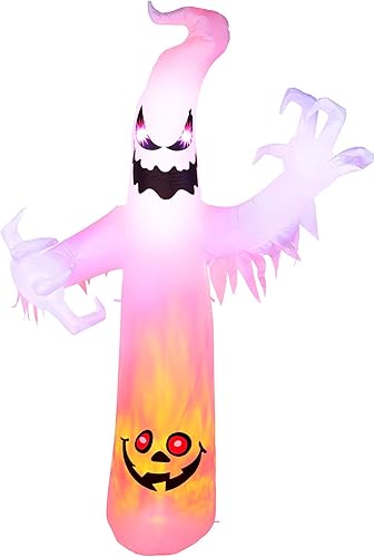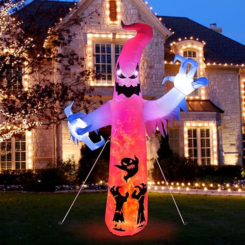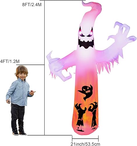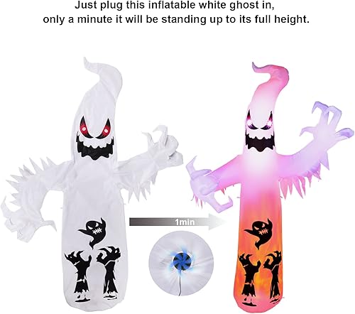 Fantôme d’Halloween 2,4 m, Décoration extérieure Spectre Blanc, Gonflable avec lumières LED intégrées à Changement de Couleur, idéal pour Les arrière-Cours, Les Jardins et Les pelouses