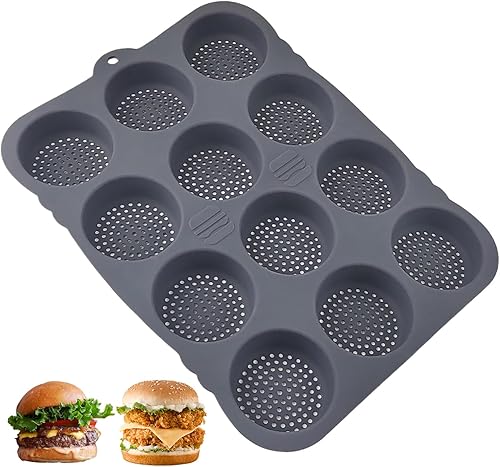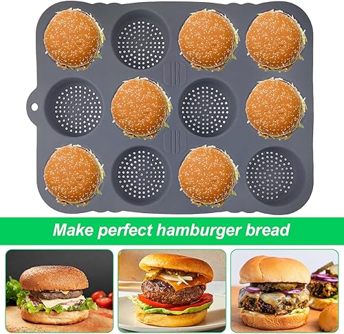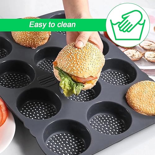 Moule à Hamburger Rond avec 12 Compartiments de 8 cm de DiamèTre Chacun, Moule à Hamburger en Silicone, Moule à Pain, Accessoire de Cuisine pour Hamburgers et Petits Pains (39.5 × 29 × 3 cm) (Noir)