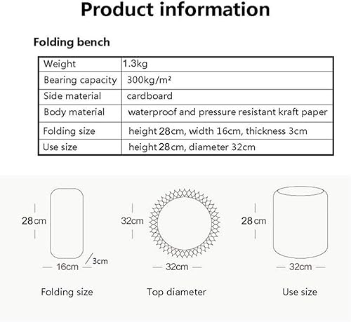 FYLARY Tabouret Pliant en Carton, Chaise Ronde Créative Papier Kraft avec Structure Hexagonale en Nid d'abeille pour L'école, Le Salon, La Salle À Manger Et Le Dortoir,Marron
