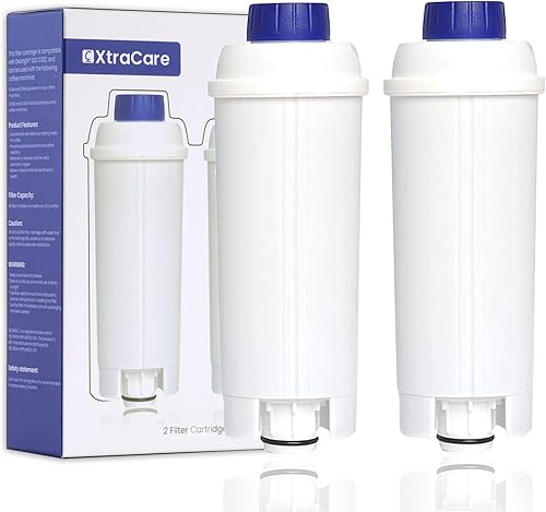 XtraCare Filtres à Eau pour Machine à Café, Compatible DLS C002, DeLonghi Magnifica, Dinamica et ECAM, ESAM, ETAM Serie, Filtre Cafetiere avec Cartouche Filtrante à Charbon Actif (Lot de 2)