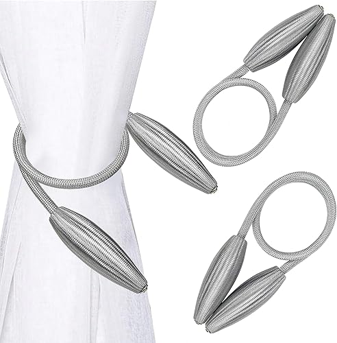 QH-Shop Embrasse à Rideaux Corde Tricot Rideau Corde Pince Décoration de Salle Chambre Fenêtre Gris Clair 2 Pièces
