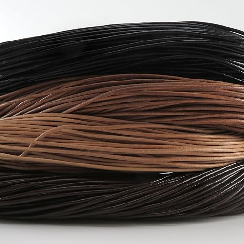 esnado cordon de cuir rond, ficelle en cuir, Courroie en cuir 10 m Ø 1,0 mm Noir