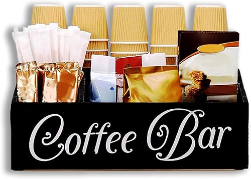 KYEQATY Station de café Organisateur de café en Bois à thé et Station de café pour comptoir Accessoire de Ferme pour k Tasse de café gousses sirop sache de thé Rangement Noir