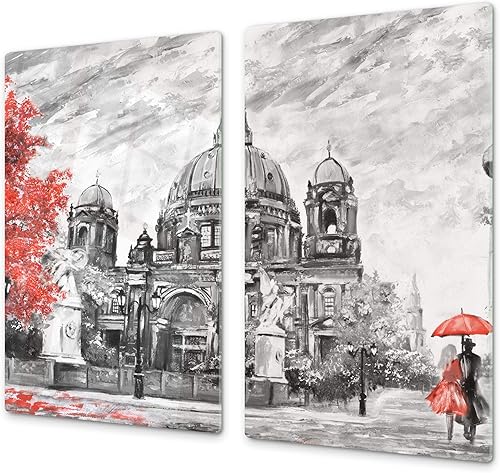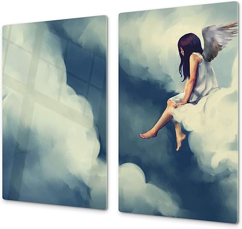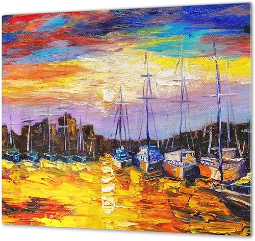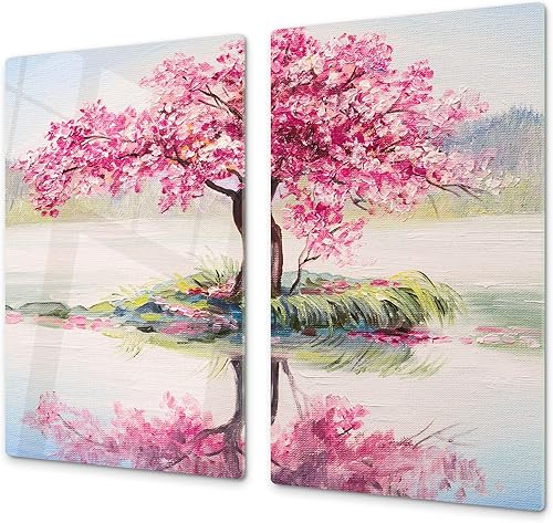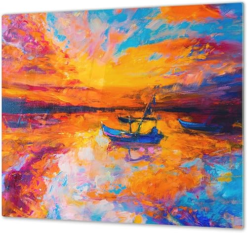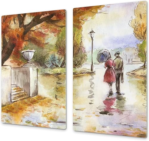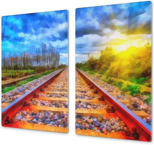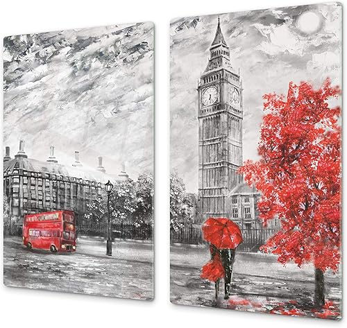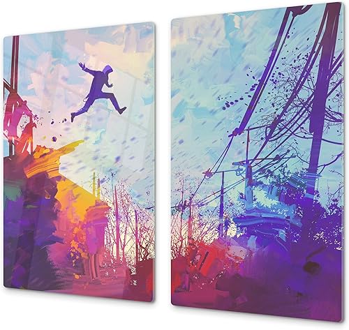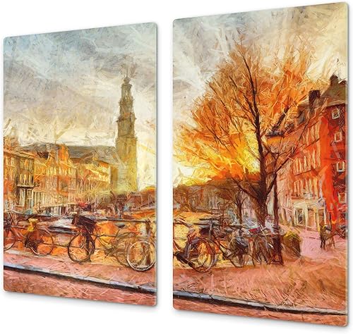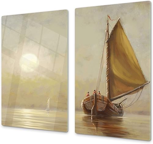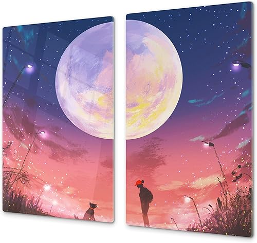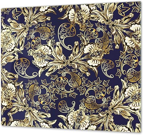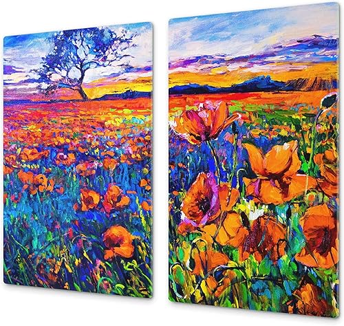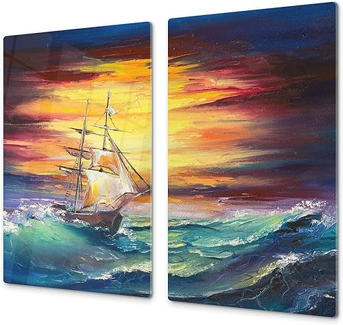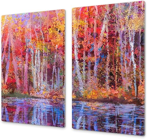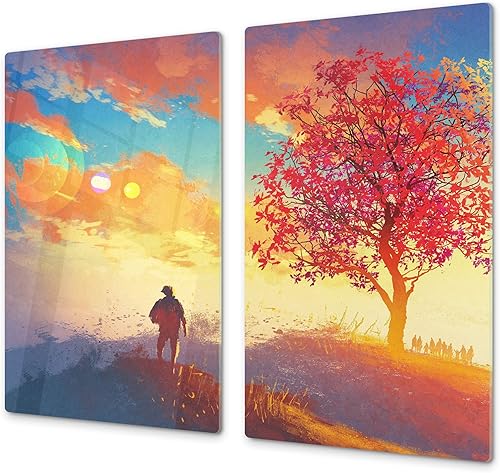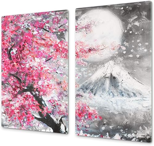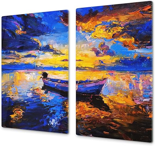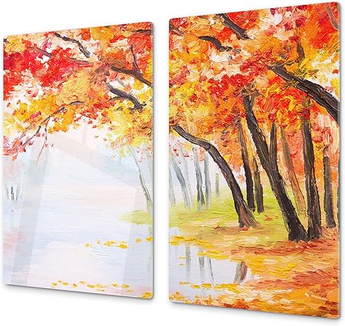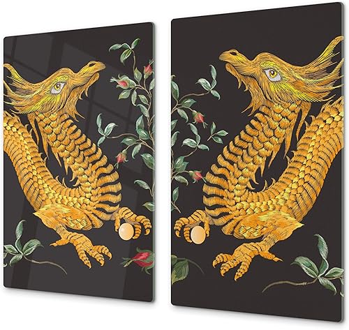 Couvre-cuisinière à induction – Planche de cuisine en verre trempé – Couvre-plaques de cuisson – UNE PIÈCE (60x52 cm) ou DEUX PIÈCES (30x52 cm chacune); D13 Série D'art: Dragons jaunes