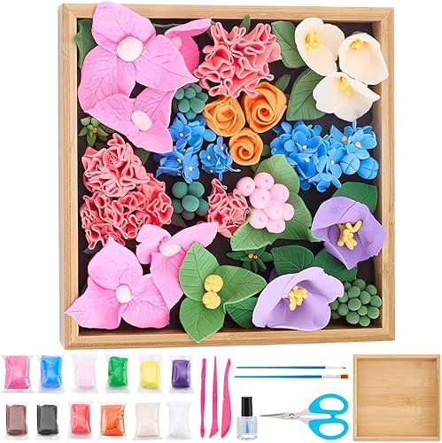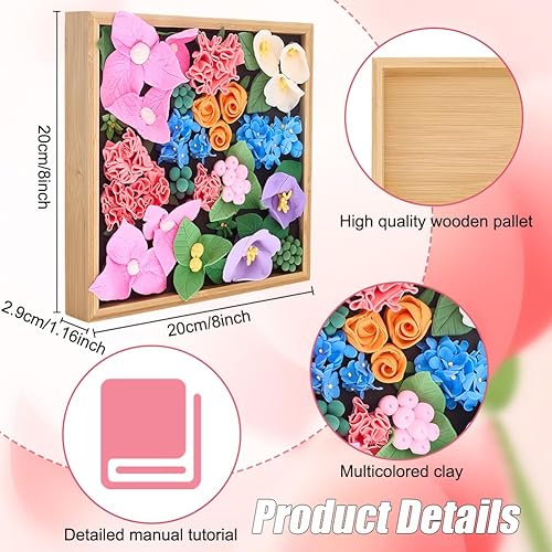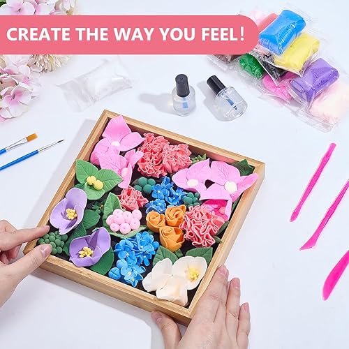 WEBEEDY Kit Argile Sèche à l'Air pour Débutants,Kit de Modelage de Fleurs 12 Couleurs avec 3 Outils de Sculpture,Présentoir pour Adultes,Succulentes 3D Art Set pour Décoration Murale de la Maison
