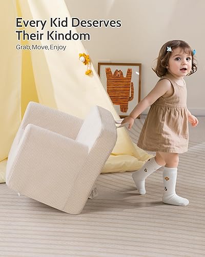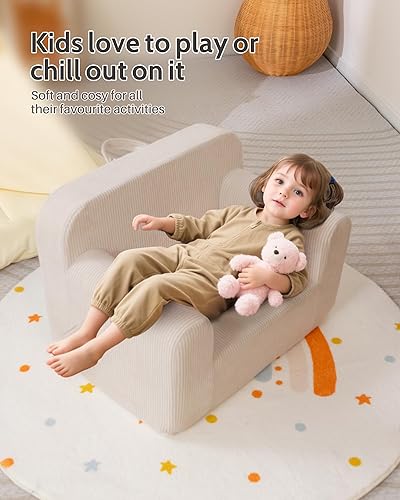 BEJOY Chaise pour enfant - Canapé en mousse ultra douce - Siège individuel - Lit en velours côtelé - Pour garçons et filles - Beige