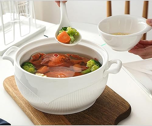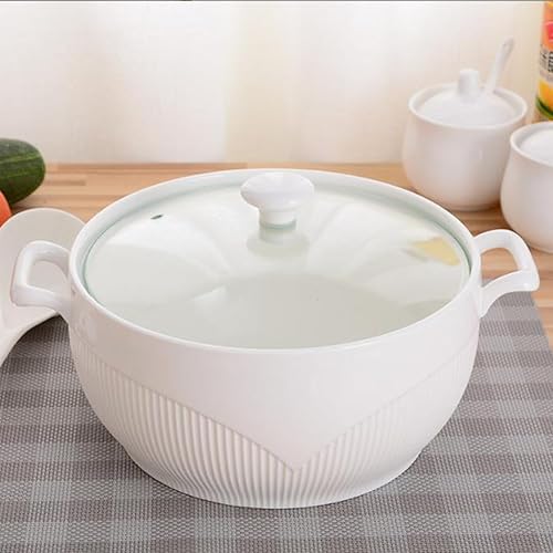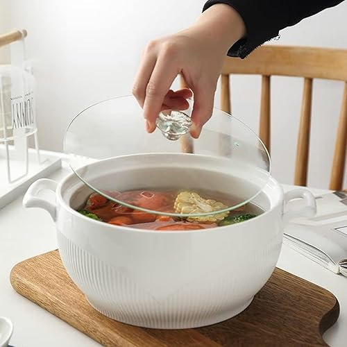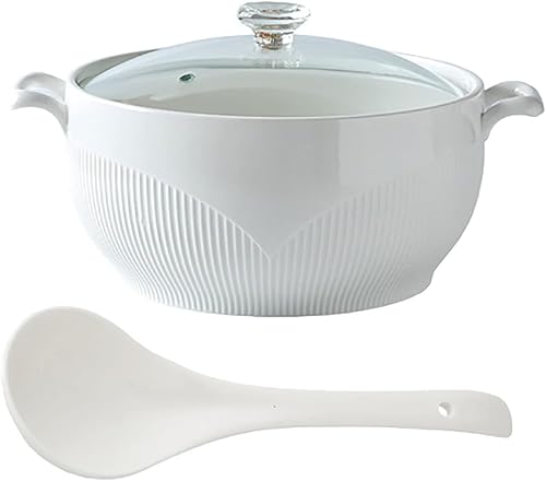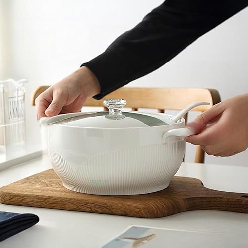 Vnook Marmite à soupe en céramique blanche, grande soupière avec couvercle en verre et louche, bol à soupe avec couvercle en diamant, marmite à soupe décorative for restaurant et maison(1500ml)
