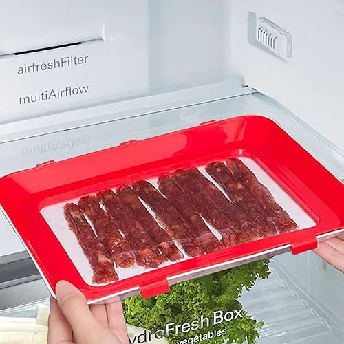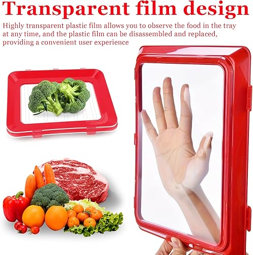 WJUAN Boite a Jambon pour Refrigerateur, 3 Pièces Boite Jambon Conservation Frigo, Rouge Boite Conservation Jambon, Film Plastique Remplaçable, pour Conserver Jambon, Viande, Légumes