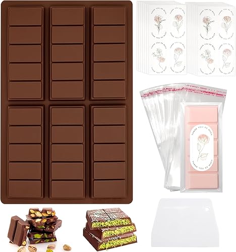 Moule Silicone Chocolat, Moule à Chocolat avec Grattoir, Pochette et Autocollant, Moule à Chocolat en Silicone, Moule Tablette Chocolat, Fmoule Silicone Tablette de Chocolat, Moule Chocolat