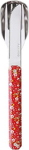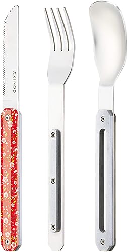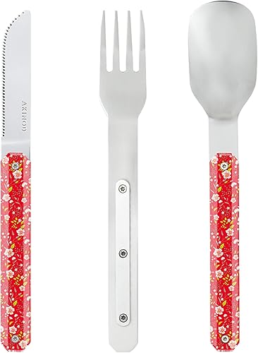 Akinod - Couverts Droits Aimantés 12H34 Hélianthème Rouge - Fourchette + Couteau + Cuillère - Couverts en Acier Inoxydable - Assemblage Aimanté - Couverts Nomades Compacts, Durables et Élégants