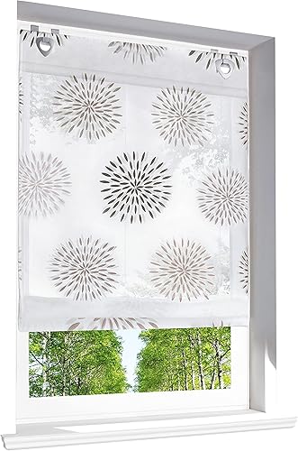 BAILEY JO 1 Pièce Store Romain avec Motifs Ronds Modernes Imprimés Store Bateau Décoration de Fenêtre Chambre/Salon/Cuisine (LxH/60x140cm, Café-Crochets)
