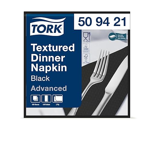 Tork Serviette Dinner gaufrée noire, pliage 1/8 2 plis, 39 cm x 39,5 cm, 12 x 100 serviettes, 509421