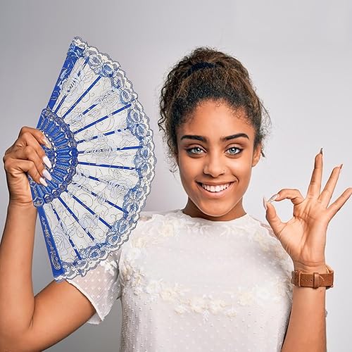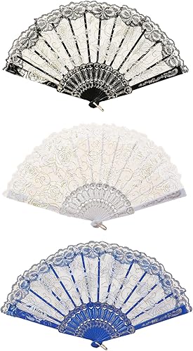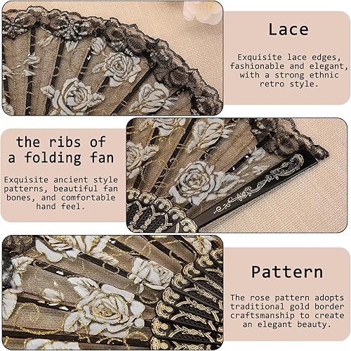 CavspkArt Lot de 3 éventails pliants en dentelle pour femme, motif rose, éventails à main chinois vintage en dentelle pour mariage, cadeaux, décorations de fête (A)