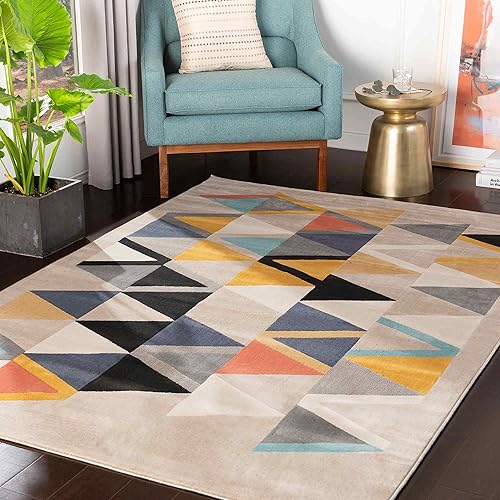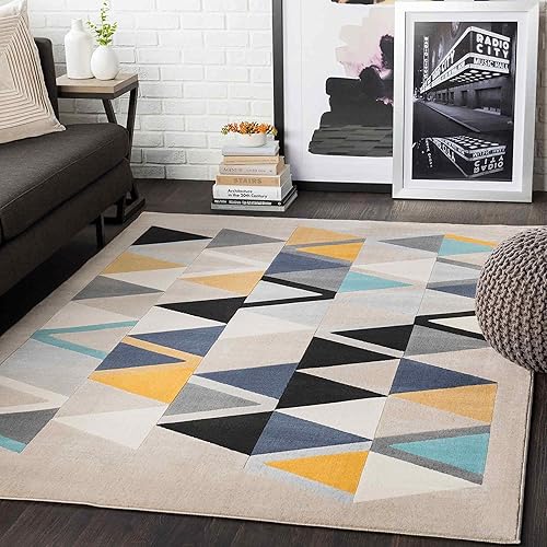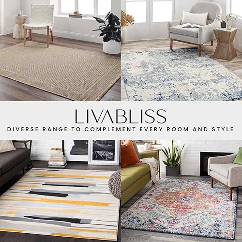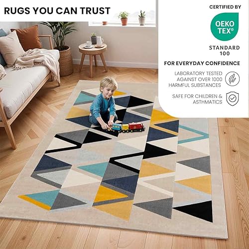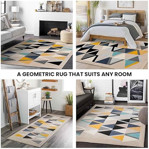 Livabliss Marietta Tapis Géométrique Scandinave - Grand Tapis Salon, Salle à Manger, Chambre, Cuisine - Design Boheme Chic, Berbere Moderne, Poil Court 160x220 cm - Beige, Jaune, Bleu