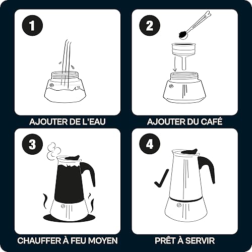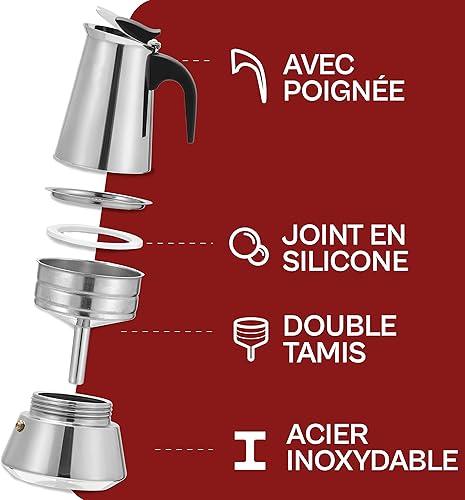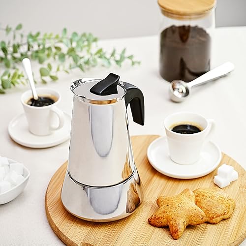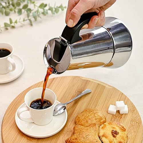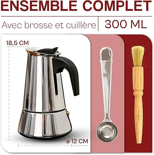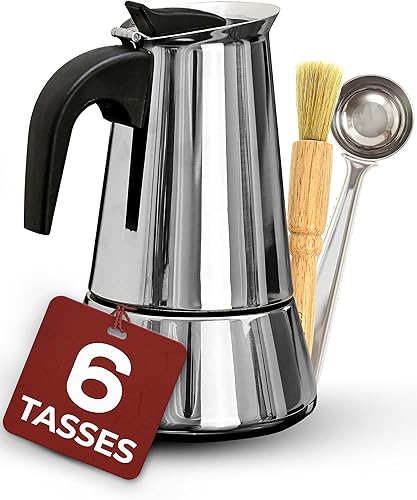 Cafetiere Italienne pour 6 Tasses - Avec Brosse de Nettoyage et Cuillère Doseuse - Convient pour Plaque à Induction
