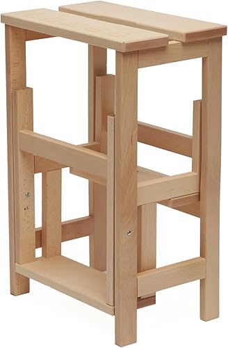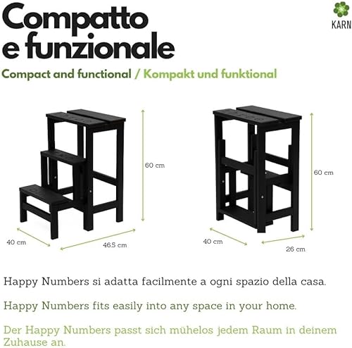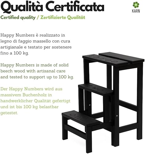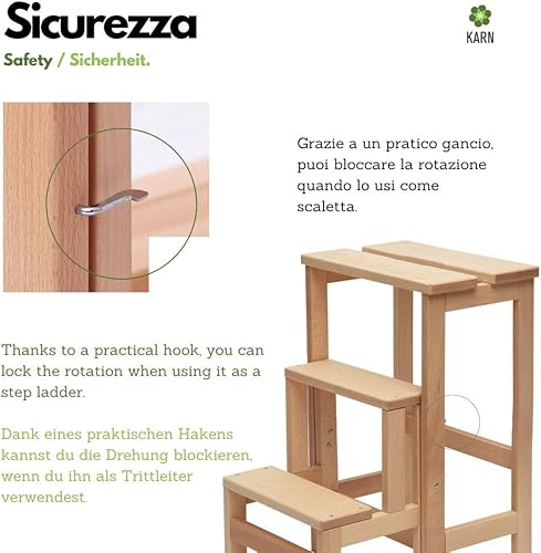Karn, Happy Tabouret échelle en hêtre Naturel et Vernis, Hauteur 60 cm, Marche pivotante avec sécurité, Couleur Naturel by Del Fabbro