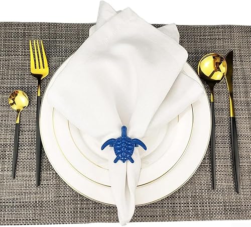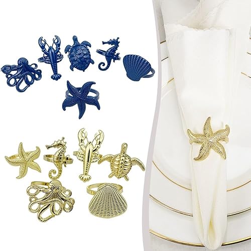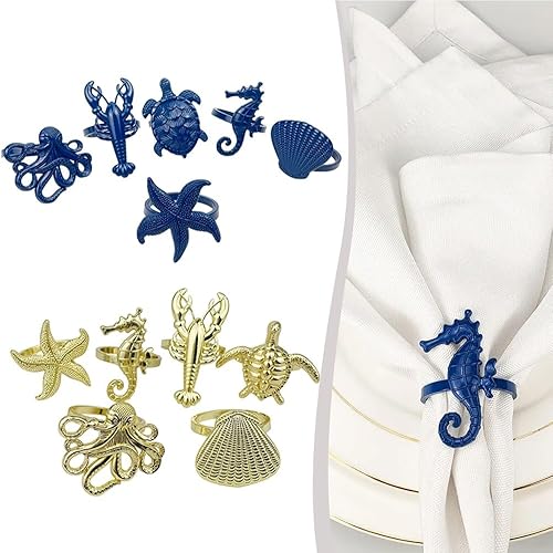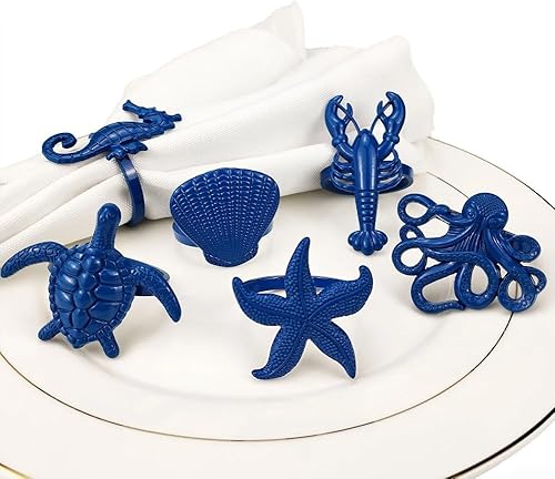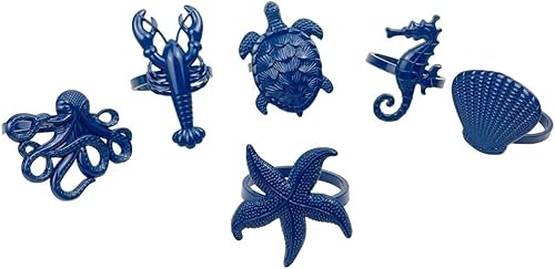 Lot de 6 ronds de serviette sur le thème marin pour dîners de famille et occasions spéciales à votre table (bleu)