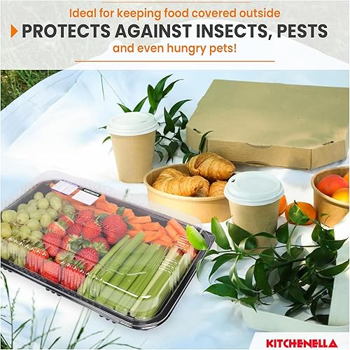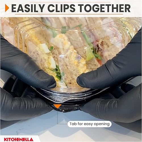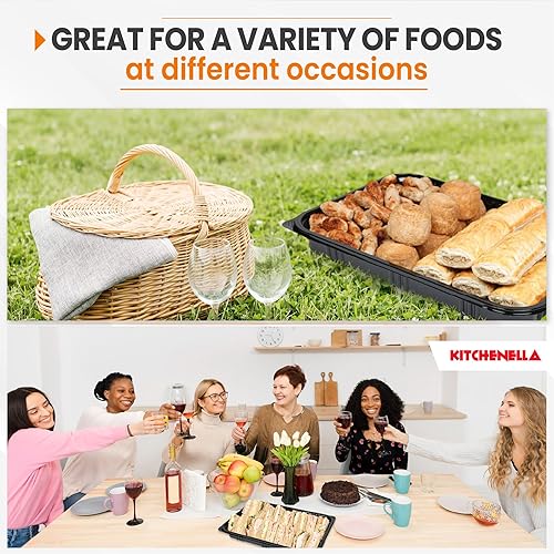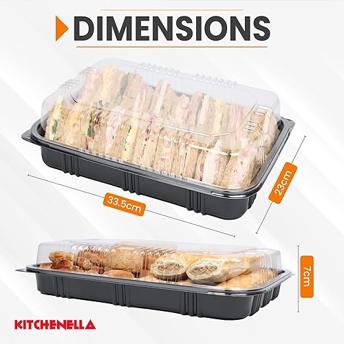 Kitchenella Plateaux à sandwich avec couvercles – Plateaux alimentaires réutilisables en plastique pour goûter, gâteaux, sushis – Allergie alimentaire et étiquettes de contenu inclus
