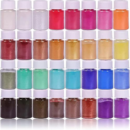 DEWEL Pigments Poudre de Mica, 32 Couleurs*5g, Colorant Résine époxy, Poudre Naturelle De Mica pour Bougies, Bombe de Bain, Slime, Maquillage, Vernis à Ongles Essentiels