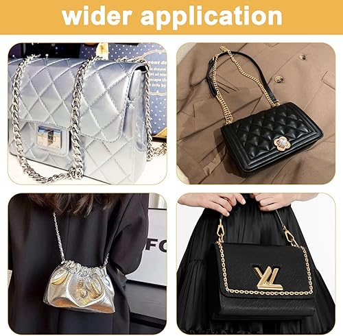 Lot de 4 chaînes de sac en métal argenté et doré pour sac à main, chaîne de rechange pour sacs à bandoulière, 60 cm/120 cm, Doré, argenté