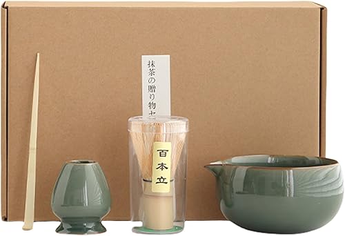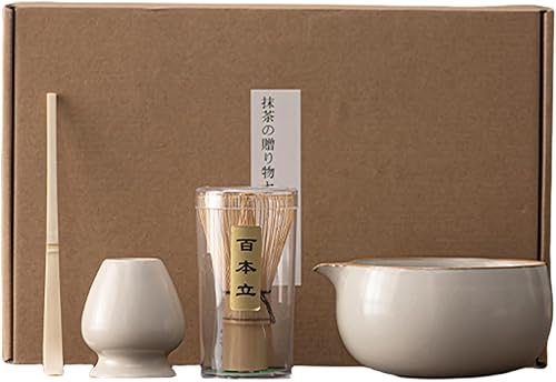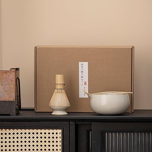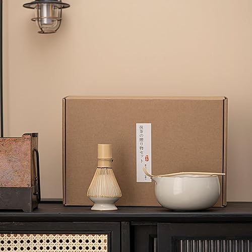 Pasdrucn 4 Pcs Service À Thé Japonais, Matcha Whisk Set Matcha Bowl, Support De Fouet À Matcha Kit, Set Fouet À Matcha, Ensemble De Fouet À Matcha,Ensemble Bol À Whisky Matcha (Beige)
