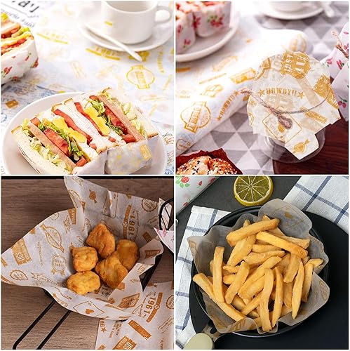 100 Papier Papier Emballage Alimentaire, 25x21.5cm Emballage Alimentaire, Papier Journal Alimentaire, Papier Burger Alimentaire, Papier D'emballage Frites, Feuille de Papier Journal Alimentaire