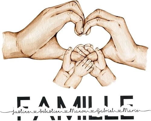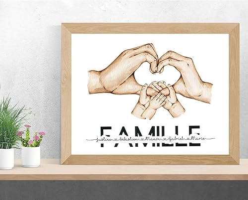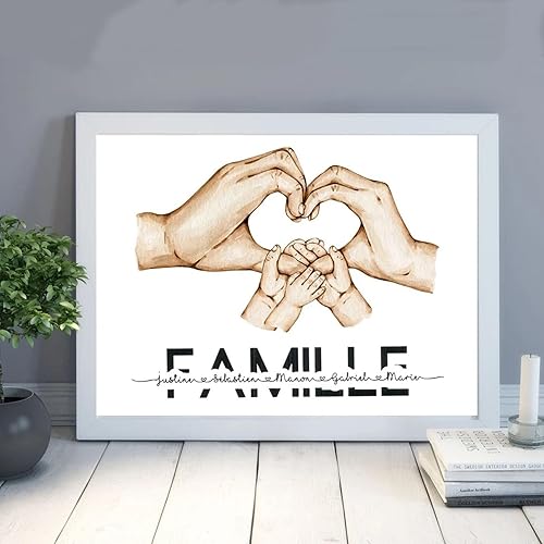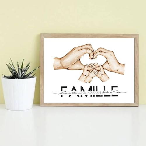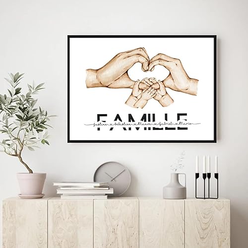 mxn Toile Personnalisée Prénom Famille Tableau Personnalisé Mains Poster Personnalisé Impressions sur Toile Famille Main dans La Main Cadeau Personnalisé Decoration Murale- sans Cadre