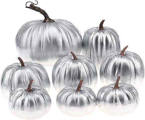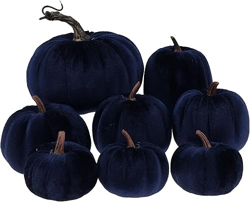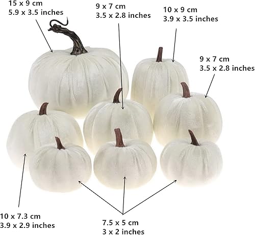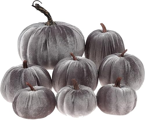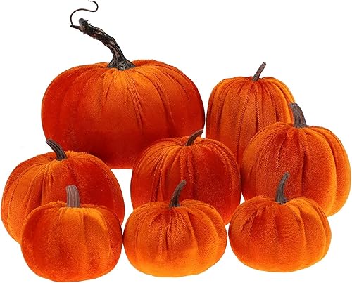 Gresorth 8pcs Assorti Taille Faux Fait à la Main Orange Velours Citrouille Artificiel Automne Moisson Halloween Décoration Maison Cuisine