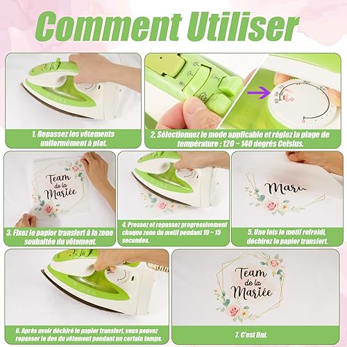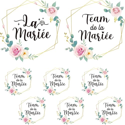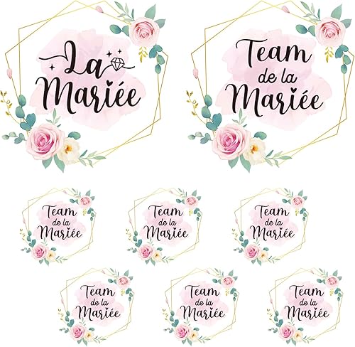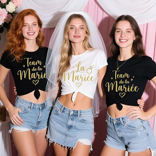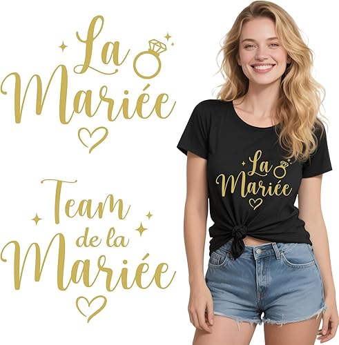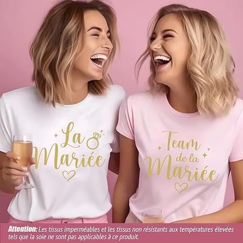 8feuilles Tee Shirt EVJF Stickers Thermocollants Transfert Textile Autocollants Thermocollant Personnalisé La Mariée Team de la Mariée Déguisement Déco pour Enterrement de Vie de Jeune Fille Mariage