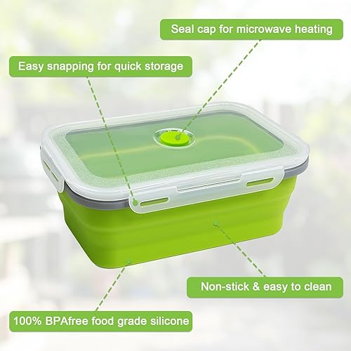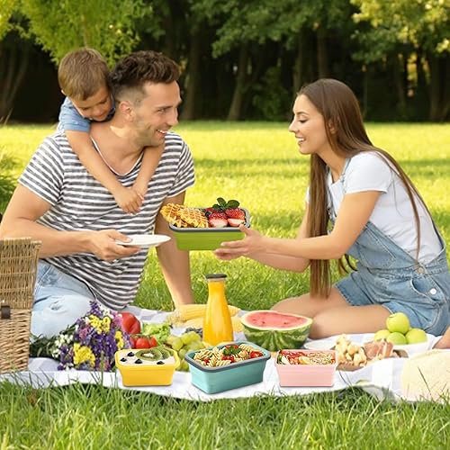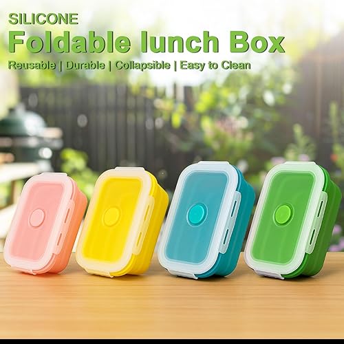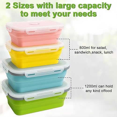 Druuzyl 4 Boîtes Bento Pliables en Silicone (800ml+1200ml) - Lunch Box Rétractable avec Couvercle - Empilable & Gain de Place - Pour Repas/Déjeuner/Aliments - Lave-vaisselle