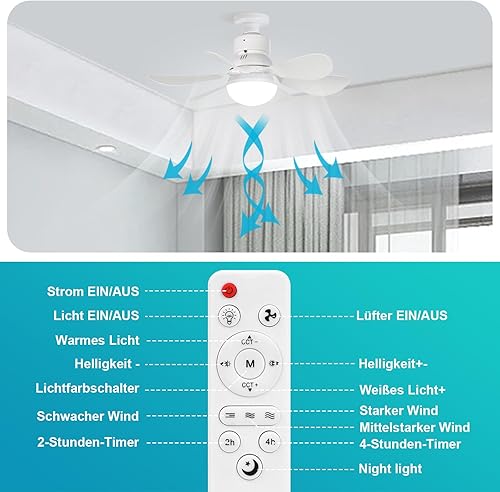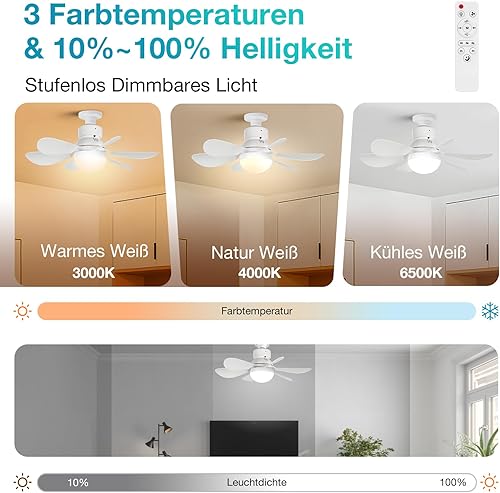 Rosnek Ventilateur de Plafond 40cm avec éclairage, 40W Plafonnier à Intensité Variable avec Télécommande, Ventilateur de Plafond Silencieux pour éclairage Salon Chambre à Coucher (Blanc)
