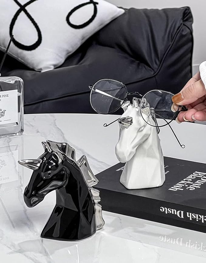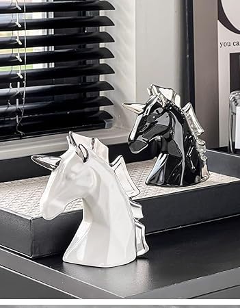 Hosoncovy Sculpture licorne en céramique - Statue de licorne - Décoration d'intérieur pour salon, bureau, étagère (noir)