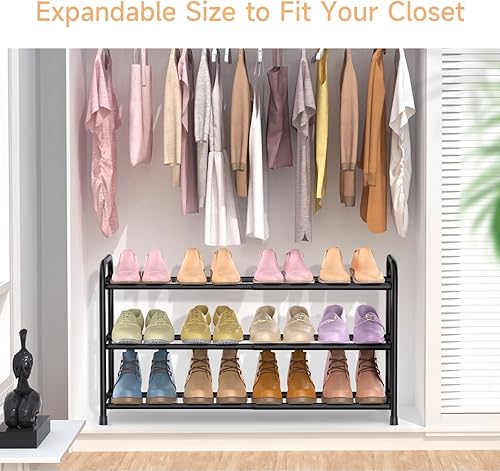 esonstyle Étagère à Chaussures, 2 Niveaux, Ajustable 42-77 cm, Pour 4-8 Paires de Chaussures, Gain de Place & Stable, Noir, pour Couloir, Chambre à Coucher