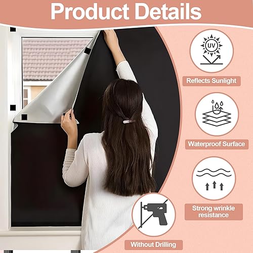 NVGVUP Stores occultants magnétiques à coller - 100 x 150 cm - Matériau occultant - Portable - Rideaux occultants à découper - Sans perçage - 24 aimants en caoutchouc - Pour ombrage des fenêtres