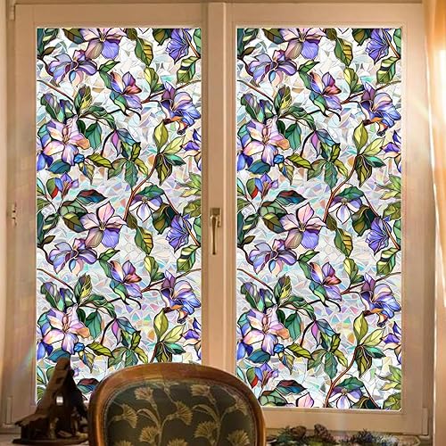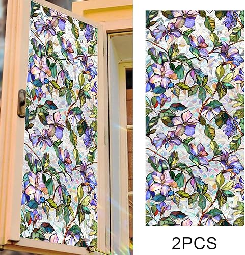 Nishiyuenyi Autocollant En PVC pour Verre, Fleurs Colorées, Décoratif, pour