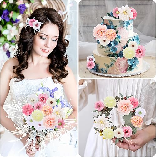 MICHIHOMIE 42 Pièces Fleurs Artificielles, Fausse Fleur avec 14 Styles, Fleurs Artificielles Deco pour DIY Scrapbooking Mariage Gâteau Fête Jardin Artisanat