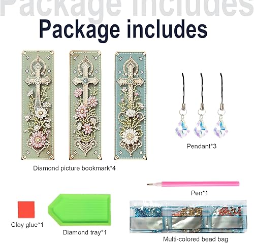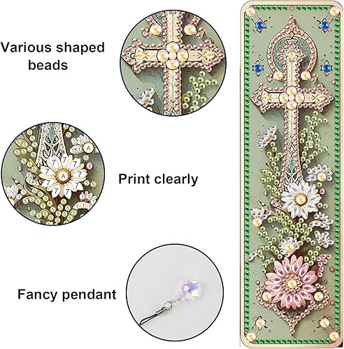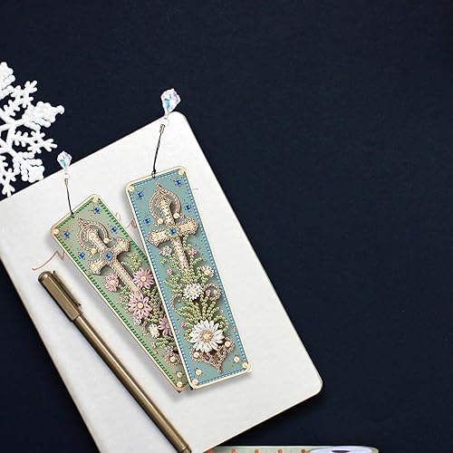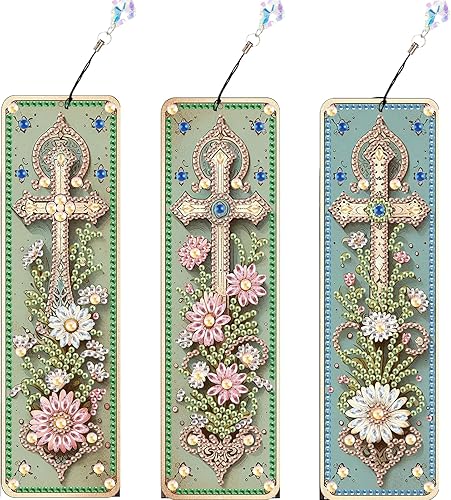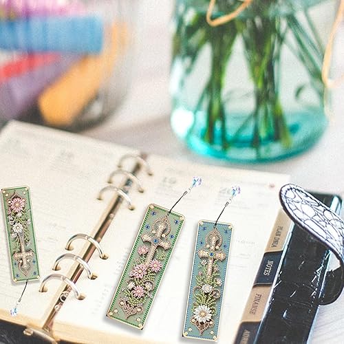 JISHSHAY 3 Pièces Diamond Painting Marque Page Diamond Painting Adulte Marque Page Peinture Diamant Marque Page Diamant Painting Marque-Pages Painting Diamant Broderie Diamant Bookmark Fleur Croix