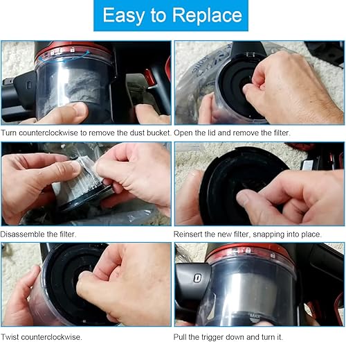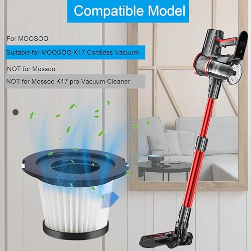 EATBALE Lot de 4 Filtres HEPA de rechange pour Moosoo K17 aspirateur, Accessoires de filtre pour aspirateur à main (4 filtres HEPA + 4 tamis + brosse de nettoyage)