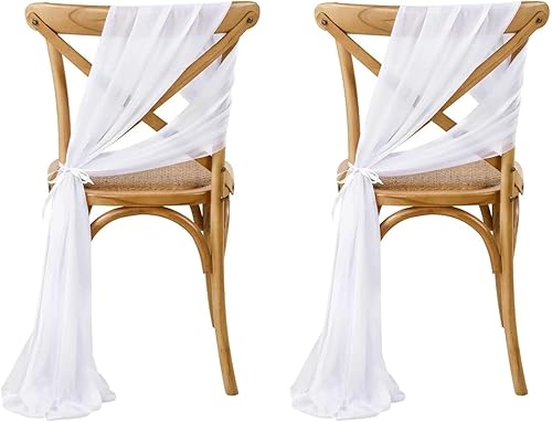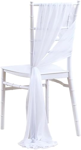 2992884031 Lot de 2 nœuds de chaise en tulle blanc organza ruban décoratif avec sangle à nouer en mousseline de soie pour mariage, chaise de couloir, décoration de maison 275 x 20 cm