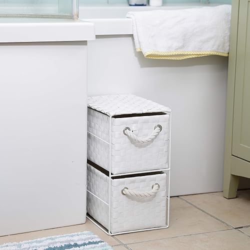 ARPAN Meuble de Rangement 2 tiroirs Blanc Idéal pour la Maison/Le Bureau/la Chambre à Coucher, Meuble 18 x 25 x 33 cm